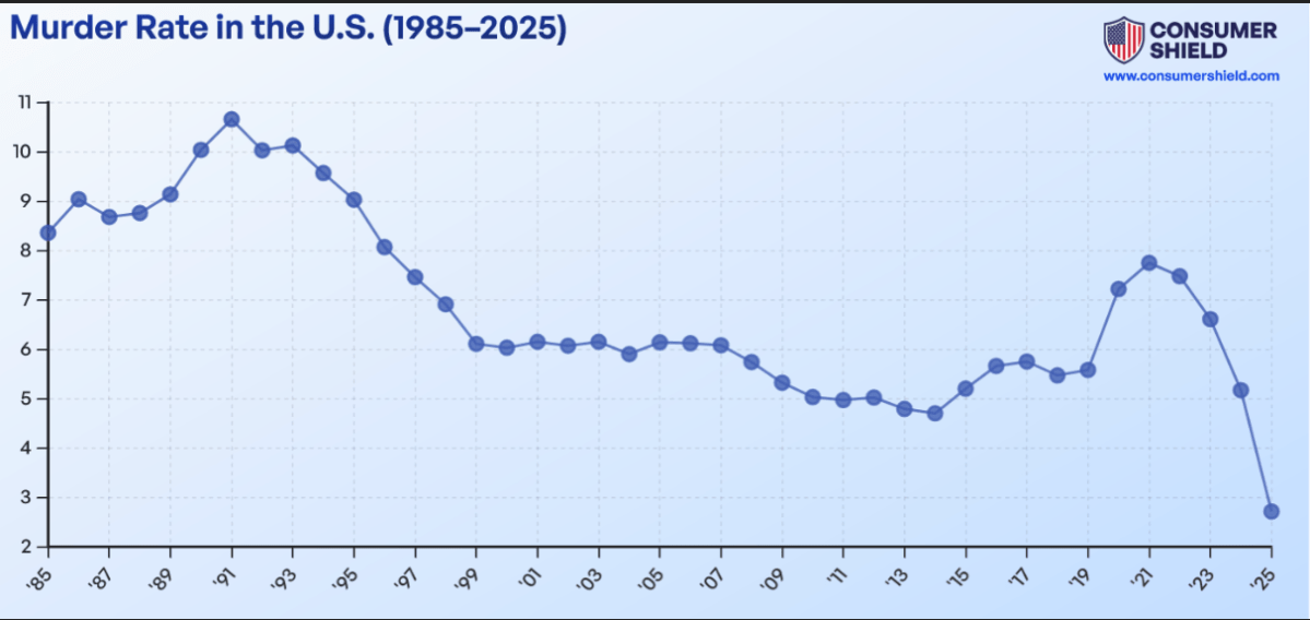- Murder rates down. No funding for Homeland SecurityMurder rates down. No funding for Homeland Security The falling US murder rates The US murder rate fell in 2025 and like any administration, Trump’s is taking credit for it. Karoline (Lying) Leavitt crowed that “that the murder rate across America’s largest cities plummeted in 2025 to its lowest level since at least 1900. This … Continue reading “Murder rates down. No funding for Homeland Security”